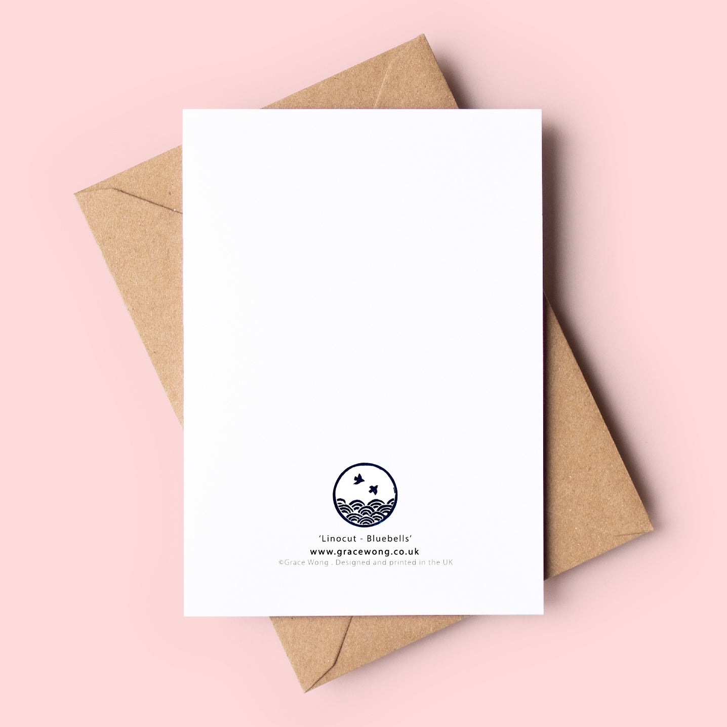 This A6 folded greeting card presents Grace’s linocut Bluebells artwork, digitally printed on FSC-certified warm white card stock with a delicate texture. It includes a brown kraft envelope and a blank interior, ideal for your personalized message for everyday greetings.