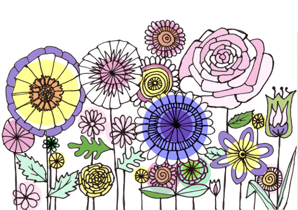 Illustration by Sam Parr. "Floral Rose" fine art print. Printed using Epsom Pigment based inks onto archival matte heavyweight paper with an Epsom R2000 Stylus Printer. Fade resistant and archival quality. A3, A4 or A5 options. Unmounted.